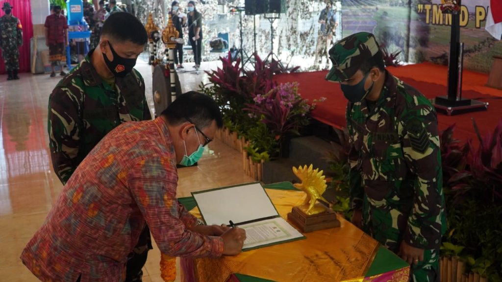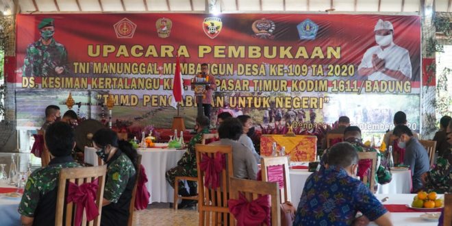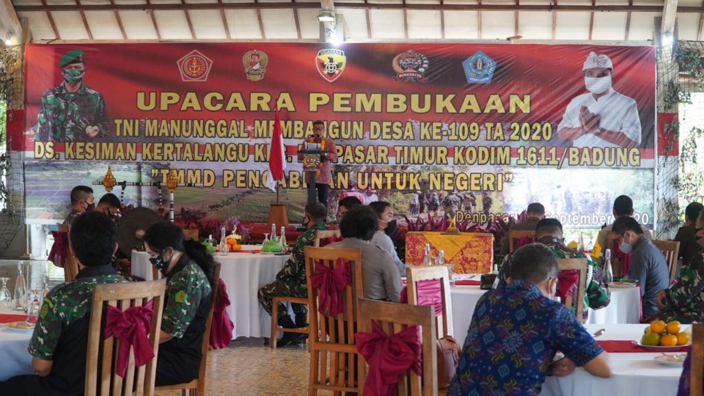 Patrolibali.com-Denpasar Bali Tentara Nasional Indonesia Manunggal Membangun Desa (TMMD) Ke 109 Kodim 1611/Badung di Desa Kesiman Kertalangu, Denpasar Timur resmi dibuka, Selasa (22/09/2020), bertempat di Wantilan Desa Budaya Kertalangu Jalan. By Pass Ngurah Rai, Desa Kesiman Kertalangu, Denpasar Timur.