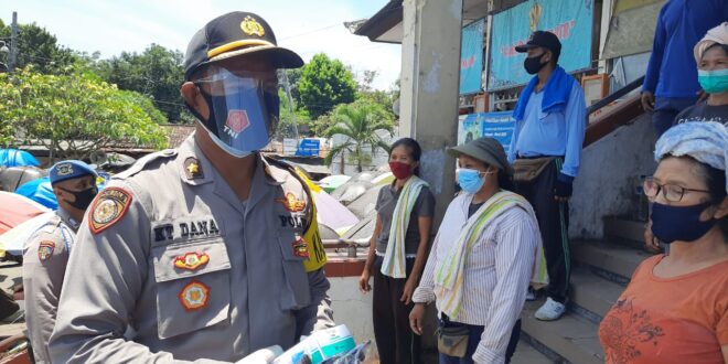 Patrolibali.Com (Gianyar) Kepolisian Resor Gianyar melakukan bakti sosial (baksos) peduli warga terdampak pandemi virus Corona (COVID-19) dengan membagikan sembako dan masker kepada juru parkir dan buruh Pasar Sukawati, Sabtu (3/10/2020).