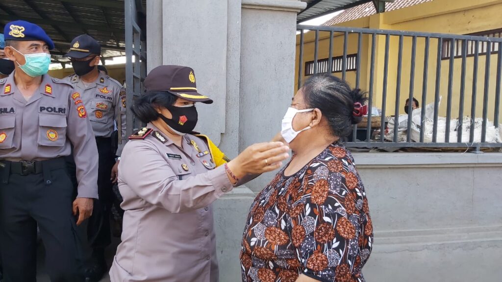 Wakapolres Klungkung Kompol Sindar Sinaga SP. Bersama kasat Pol PP. I Putu Suarta.memimpin operasi Yustisi di Pasar Kusamba dengan menyasar warga yang sedang beraktipitas dan para pedagang yang ada di pasar Kusamba dan pengendara yang tidak mengunakan masker.