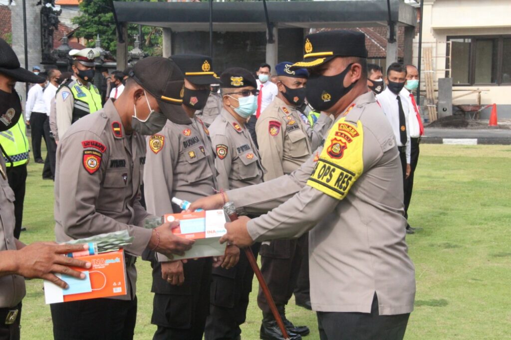 Kapolres Klungkung menyampaikan protokol kesehatan Covid-19 berlaku untuk semua orang bukan untuk masyarkat saja. Berbagai upaya telah dilakukan untuk bersama sama menerapkan protokol kesehatan Covid-19.