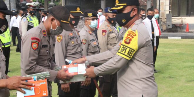 “Kita sebagai anggota Polri harus memberikan contoh kepada masyarakat bagaimana kita menerapkan protokol kesehatan Covid-19 agar mampu dicontoh oleh masyarakat, karena sampai saat ini masih ada warga masyarakat yang terpapar Covid-19” Ujarnya.