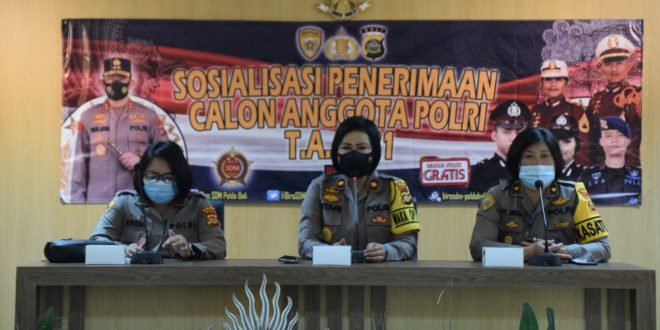 Kompol Putu Utari seijin Kapolres Badung AKBP Roby Septiadi, SIK menyampaikan Sosialisasi penerimaan calon anggota Polri ini merupakan salah satu bentuk trasparansi Polri dalam menerima calon-calon anggota Polri yang berkwalitas dalam memberikan pelayanan kepada masyarakat ke depan.