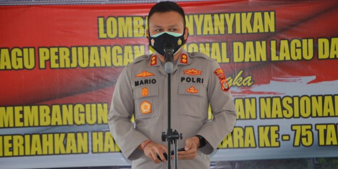 “Lomba menyannyi lagu perjuangan Nasional dan lagu daerah dalam rangka membangun kesadaran nasional dan memeriahkan hari Bhayangkara ke 75 tahun 2021 ” Lomba Nyanyi digelar di Aula Wisnu Hartono Polres Tabanan