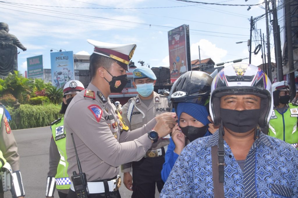 Kapolres Tabanan AKBP Ranefli Dian Candra, S.I.K., M.H., melalui Kasat Lantas Polres Tabanan AKP Kanisius Franata, S.I.K., yang memimpin jalannya pelaksanaan pembagian Masker, mengatakan bahwa pelaksanaan operasi Zebra Agung hari pertama ini kami bagikan ratusan masker kepada masyarakat hal ini bertujuan untuk mengedukasi masyarakat agar tetap disiplin dalam menerapkan protokol kesehatan. Sehingga kita semua bisa terhindar dari penyebaran covid19 . Demikian juga kami telah memberikan himbauan tentang Kepatuhan terhadap Peraturan berlalu lintas dengan membagikan stiker himbauan pada pengendara kendaraan bermotor. Kata Kasat Lantas Polres Tabanan.