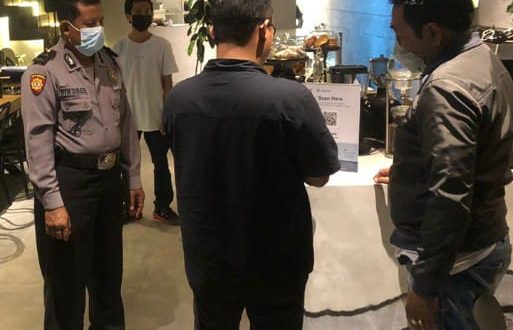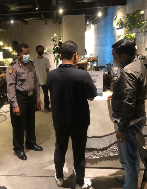 Selain memberikan himbauan Prokes Covid 19, Personil Unit Samapta kembali mengingatkan kepada pengelola usaha baar, restaurant, cafe dan swalayan agar mengaktifkan penerapan Scan Barcode Pedulilindungi