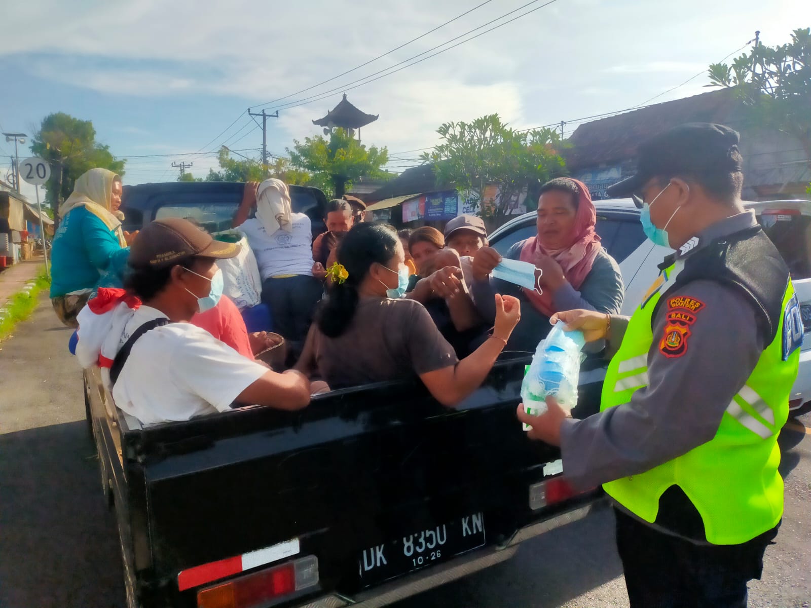 “Kami menyelipkan pembagian masker kepada masyarakat pengguna jalan, sekaligus memberikan edukasi penggunaannya dengan baik dan benar, ujar Ipda Arik.