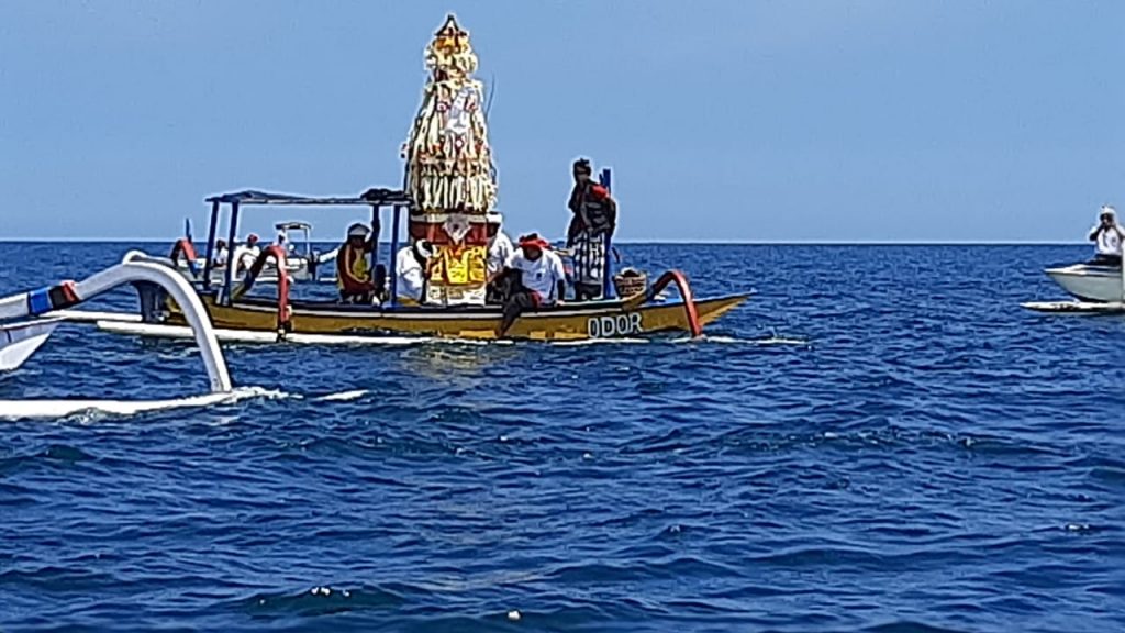 “Kronologisnya proses matur pakelem dari pantai rangka Ketewel dengan mempergunakan 12 jukung tradisional kita kawal dari pantai menuju tengah laut,” ujarnya.