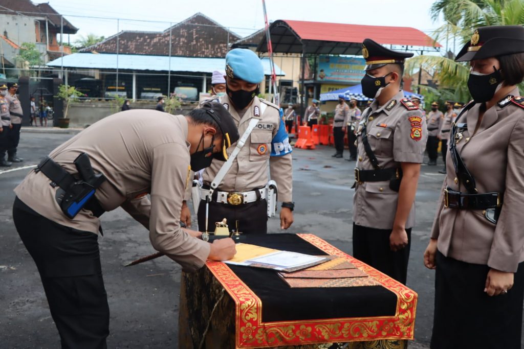 “Pejabat yang baru, mari menyesuaikan diri dengan anggota baru, bekerja sama dengan staf, agar bisa bekerja dengan baik dan menyenangkan serta dapat memberikan pelayanan yang optimal kepada masyarakat” kata Kapolres Badung.