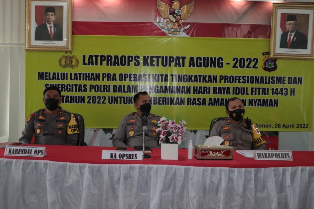 Kapolres Tabanan didampingi Wakapolres Tabanan dan Kabag Ops menyampaikan kepada para personil yang tersprint dalam operasi bahwa “Pelaksanaan operasi Ketupat Agung 2022 akan berlangsung dari tanggal 28 sampai dengan 9 Mei 2022. Dalam pelaksanaan operasi Ketupat Agung 2022 ini agar personil yang bertugas di masing-masing Pos Pengamanan (Pospam) dan Pos Pelayanan Terpadu (Posyandu) memperhatikan performance saat bertugas. Kelengkapan Gampol termasuk kelengkapan Pos agar dichek and rechek.” Tegas Kapolres Tabanan