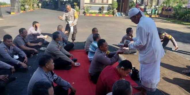 Persembahyangan ini dituntun oleh pemangku Polsek Abiansemal Mangku Puasa yang di pimpin Wakapolsek Abiansemal Kompol I Made Ariawan,S.H.