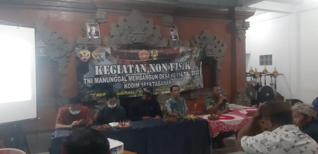 Menurut Perwira Seksi Teritorial Kodim 1619/Tabanan Kapten Inf I Made Widiarta Seijin Dandim 1619/Tabanan selaku Dansatgas TMMD Ke-114 Letkol Inf Ferry Adianto S.I.P menerangkan bahwa “Kegiatan Non Fisik dalam Program TMMD ke-114 ini terus kita lanjutkan tentunya dengan mempertimbangkan materi-materi yang dibutuhkan dan dan dapat memberikan manfaat untuk masyarakat setempat”, ungkapnya