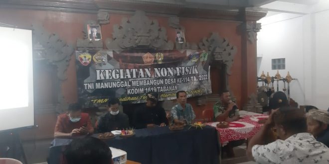 Menurut Perwira Seksi Teritorial Kodim 1619/Tabanan Kapten Inf I Made Widiarta Seijin Dandim 1619/Tabanan selaku Dansatgas TMMD Ke-114 Letkol Inf Ferry Adianto S.I.P menerangkan bahwa “Kegiatan Non Fisik dalam Program TMMD ke-114 ini terus kita lanjutkan tentunya dengan mempertimbangkan materi-materi yang dibutuhkan dan dan dapat memberikan manfaat untuk masyarakat setempat”, ungkapnya