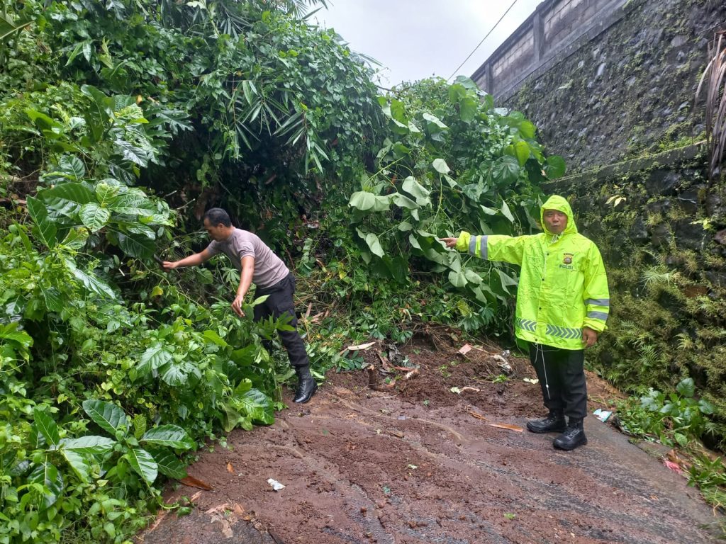 “Disini ada 2 tempat yang mengalami tanah longsor yaitu tanah senderan milik Bapak Kadek Agus (Degus) yang mana longsornya pohon bambu dan pohon amplas yang menutup akses jalan dan longsornya tembok pekarangan rumah milik Bapak Wayan Muncab yang juga menutup akses jalan” jelasnya.