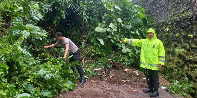 “Disini ada 2 tempat yang mengalami tanah longsor yaitu tanah senderan milik Bapak Kadek Agus (Degus) yang mana longsornya pohon bambu dan pohon amplas yang menutup akses jalan dan longsornya tembok pekarangan rumah milik Bapak Wayan Muncab yang juga menutup akses jalan” jelasnya.