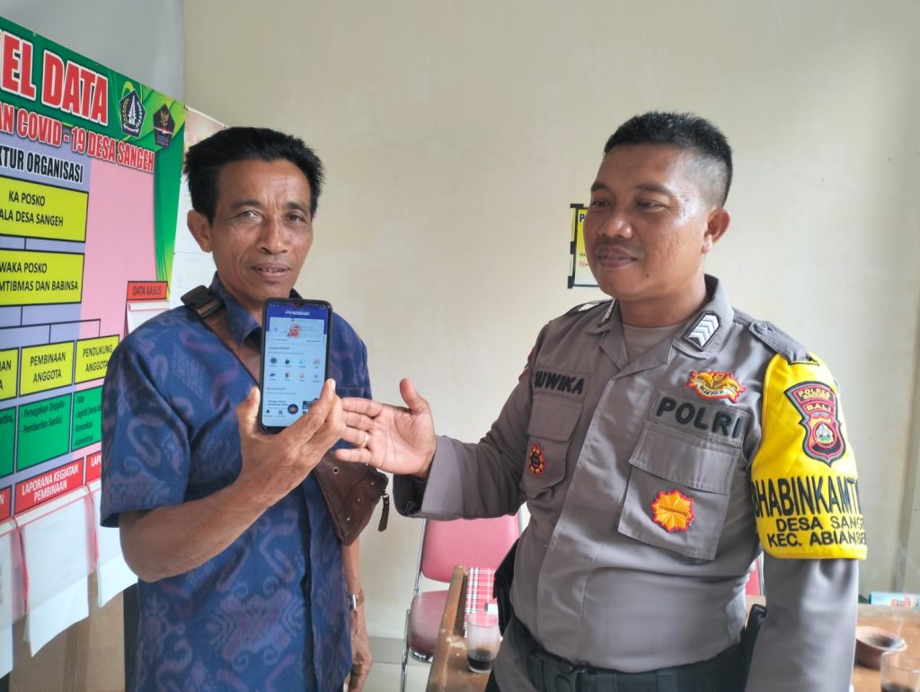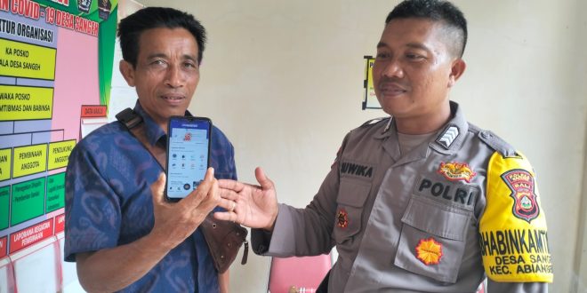 Badung, Patrolibali.com – giat rutin Bhabinkamtibmas Desa Sangeh melaksanakan sosialisasi aplikasi Polisi Super App kepada masyarakat An I Gusti Ngurah Arta Br. Tegal Grana bersama rekanya bernama I Ketut Sukalana Br. Batu Lumbang Desa Sangeh Kecamatan Abiansemal pada hari selasa (22/11/22) pukul 10.00 wita.