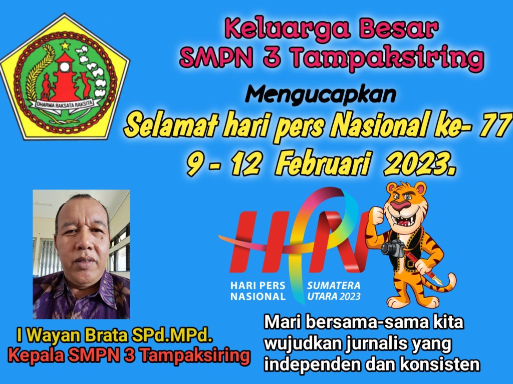SMPN 3 Tampaksiring I Wayan Brata Spd.Mpd mengucapkan Selamat Memperingati Hari Pers Nasional ke- 77. Tahun 2023. Rudi Februari 5, 2023 BERITA, PENDIDIKAN Leave a comment 13 Views Related Articles Selamat Hari Raya Galungan Dan Kuningan, 19 – 29 November 2025 6 jam ago Sambut HUT Kota Singasana ke-532, Koramil Kerambitan Turun Tangan dalam Aksi Gerebek Sampah 5 hari ago Polda Bali Gencar Awasi Harga Beras, 2 Toko di Denpasar Terjaring Razia 2 minggu ago Share Facebook Twitter Stumbleupon LinkedIn Pinterest