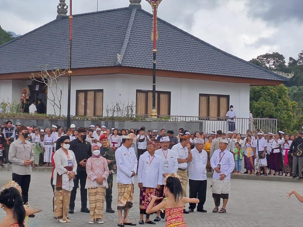 Saat tiba di Kawasan Suci Pura Agung Besakih, Presiden Republik Indonesia Ir. H. Joko Widodo juga didampingi oleh Gubernur Bali Dr. Ir. I Wayan Koster, M.M., Pangdam IX/Udayana Mayjen. TNI Sonny Aprianto S.E., M.M., serta seluruh Pejabat dari Forkopimda Provinsi Bali saat meresmikan Kawasan Suci Pura Agung Besakih, Karangasem.