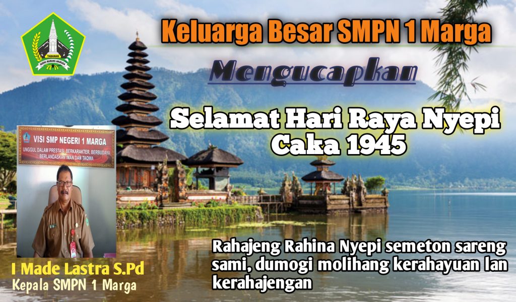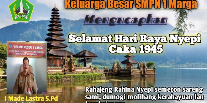 SMP Negeri 1 Marga I Made Lastra S.Pd ; Mengucapkan Selamat Hari Raya Nyepi Caka 1945. Rudi Maret 19, 2023 BERITA, PENDIDIKAN Leave a comment 9 Views Related Articles Selamat Hari Raya Galungan Dan Kuningan, 19 – 29 November 2025 10 jam ago Sambut HUT Kota Singasana ke-532, Koramil Kerambitan Turun Tangan dalam Aksi Gerebek Sampah 5 hari ago Polda Bali Gencar Awasi Harga Beras, 2 Toko di Denpasar Terjaring Razia 2 minggu ago Share Facebook Twitter Stumbleupon LinkedIn Pinterest