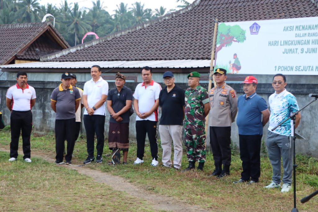 Badung, Patrolibali _ Kepala Kepolisian Resor Badung AKBP Teguh Priyo Wasono, SIK hadiri kegiatan penanaman pohon Tanjung dan sosialisasi tertib pembayaran pajak kendaraan dari PT. Jasa Raharja Cabang Bali di lingkungan Br. Pemijian, Desa Sangeh, kecamatan Abiansemal, Kabupaten Badung, Bali. Jumat, (9/6/2023) pagi