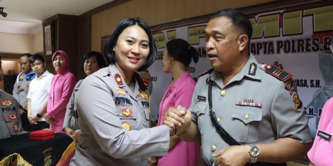 “Saya selaku Kapolres Badung dan seluruh Jajaran mengucapkan selamat kepada rekan-rekan yang mendapatkan mutasi semoga bisa menjalankan tugas dengan baik di tempat yang baru, dan kepada Pejabat baru selamat datang di keluarga besar Polres Badung segera menyesuaikan di Jabatan yang baru.” Pungkasnya didampingi Ketua Bhayangkari Cabang Badung Ny. Levi Teguh disela-sela menyerahkan cinderamata.