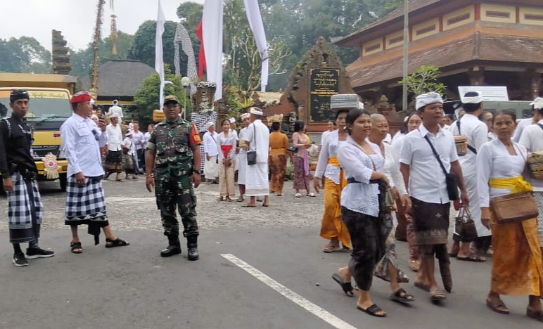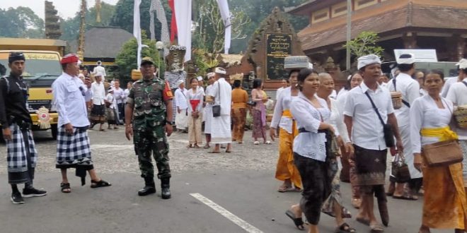 TABANAN, Patrolibali – Anggota Kodim1619/Tabanan melalui Babinsa Desa Wongaya Gede Koramil 1619-08/Penebel Sertu I Gede Putu Suparta melaksanakan pengamanan sekaligus memantau pelaksanaan kegiatan upacara Pujawali Pura Luhur Batukau Desa Wongaya Gede Kecamatan Penebel Kabupaten Tabanan yang akan berlangsung selama 3 (Tiga) hari dari tanggal 3 s.d 6 Agustus 2023. Kamis (3/8/2023).