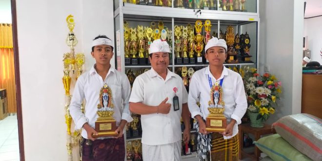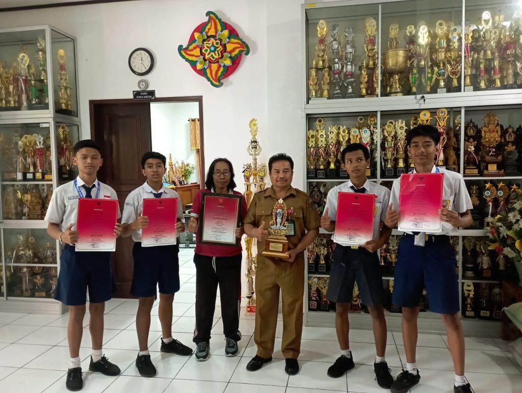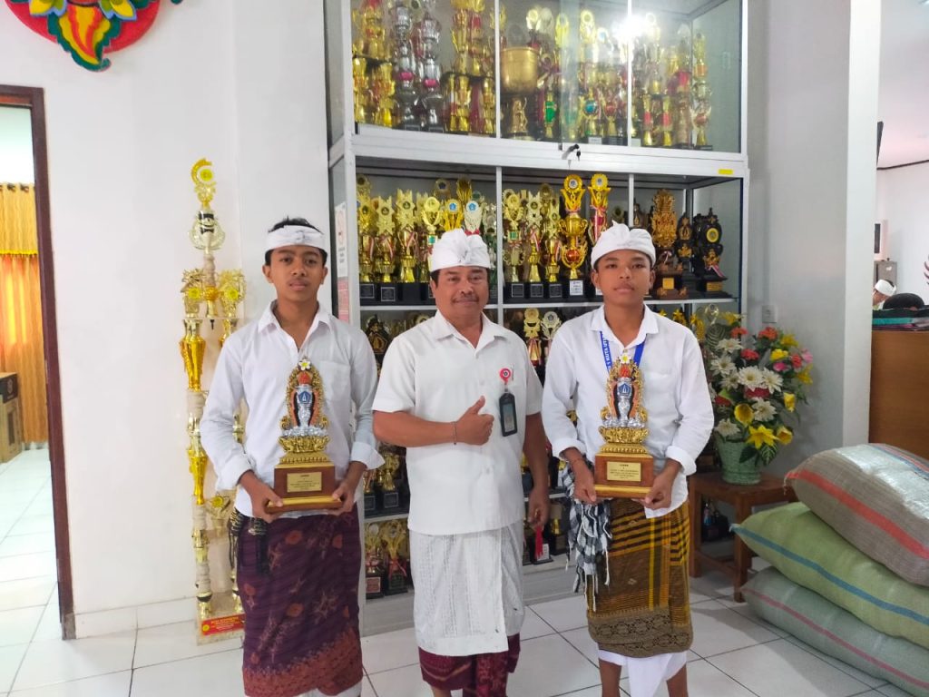 Adapun anak didik kami yang meraih juara 1 berkelompok tingkat Provinsi dan tingkat kabupaten bernama I Made Ega Aditya, Ida Bagus Anom Tri Anantha Putra, I Putu Yasa Demung, I Gusti Agung Putu Bagus Arya Wibawa, dan I Made Dipa Krisna Sudarma,” Jelas Kepsek.