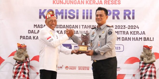 DENPASAR,Patrolibali – Kepala Kantor Wilayah Kemenkumham Bali, Romi Yudianto didampingi oleh Para Pimpinan Tinggi Pratama dan Para Kepala Unit Pelaksana Teknis Kanwil Kemenkumham Bali menerima Kunjungan Kerja Reses Komisi III DPR RI Masa Persidangan I Tahun Sidang 2023-2024 di Kantor Wilayah Kementerian Hukum dan HAM Bali, Selasa (24/10).