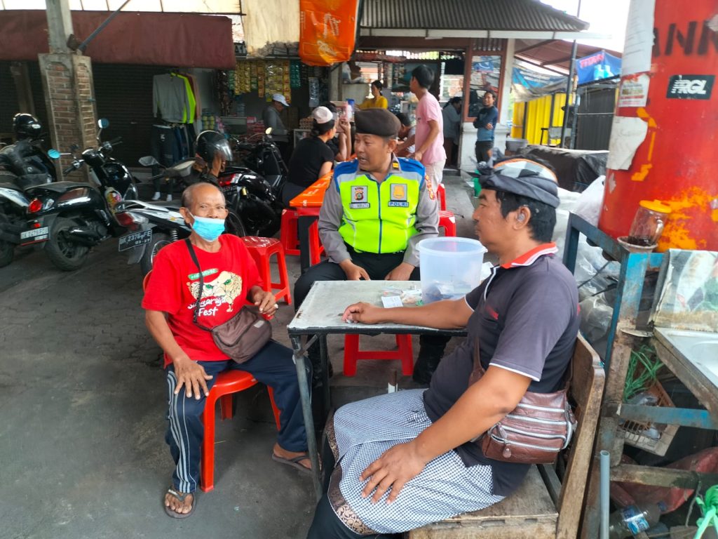 Mangupura,Patrolibali – Kasubsatgas Pam Obyek Vital Satgas Preventif Operasi Mantap Brata Agung 2023 – 2024 Iptu I Gede Wirata melaksanakan Patroli dialogis dan berkoordinasi dengan salah satu warga I Nyoman Purnawan di Pasar Adat Dalung, Kuta Utara, Kabupaten Badung, Bali. Sabtu (11/11) sore 15.00 WITA.