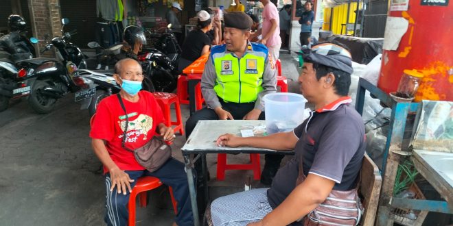Mangupura,Patrolibali – Kasubsatgas Pam Obyek Vital Satgas Preventif Operasi Mantap Brata Agung 2023 – 2024 Iptu I Gede Wirata melaksanakan Patroli dialogis dan berkoordinasi dengan salah satu warga I Nyoman Purnawan di Pasar Adat Dalung, Kuta Utara, Kabupaten Badung, Bali. Sabtu (11/11) sore 15.00 WITA.