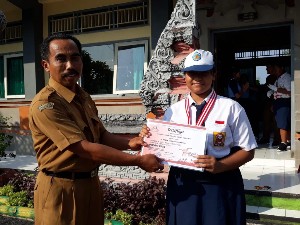 Lebih lanjut disampaikan bahwa siswa prestasi di bidang lomba puisi bahasa Bali tingkat provinsi, Juara Lomba speech contest dan lomba story telling ditingkat Nasional Anak yang bernama Raja Mahadana kelas IX, Ni Kadek Cahaya Darmayanti juga berprestasi dalam Olimpiade bahasa inggris meraih juara 1, dan lomba UKS juara 3 tingkat Nasional tahun 2011, “Pungkasnya.