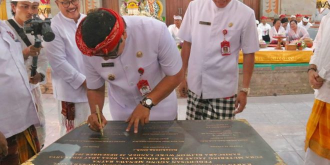 Bupati Sanjaya Tandatangani Prasasti Pemelaspasan Penyengker RSUD Tabanan dan Prasasti Tawur Agung Pura Mutering Jagat Dalem Sidakarya