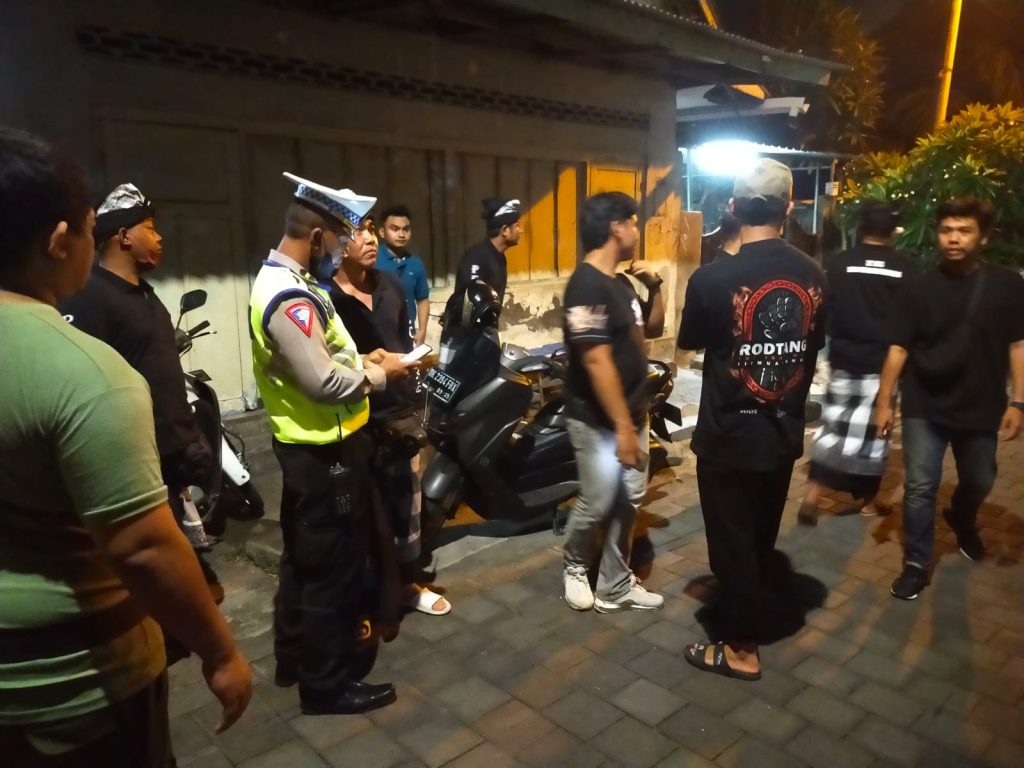 Pada malam ini Rabu, 7 Pebruari 2024 jam 21.00 Wita, Perwira Pengawas AKP Nyoman Anom Suardana, S. H., bersama Kanit Binmas AKP Wayan Budiartana, S. H., mendampingi Perbekel Desa Dauh Puri Kangin Ni Ketut Anggreni Wati mengawal kegiatan Tibduktang yang dilakukan dengan melibatkan 34 personil bawahannya.
