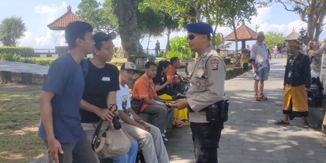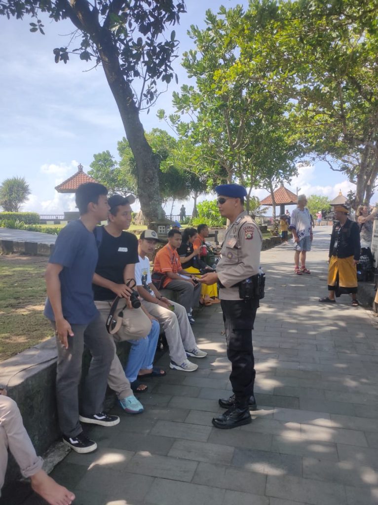 ” Bersama Life Guard DTW Tanah Lot melaksanakan Patroli Jalan Kaki dan Dialogis serta memberikan himbauan kepada Para Wisatawan / Pengunjung, Pelaku Usaha Wisata, Photographer, Pedagang dan warga masyarakat yang beraktivitas di Pantai dan Kawasan DTW Tanah Lot Kediri Tabanan” terang AKP Artadana