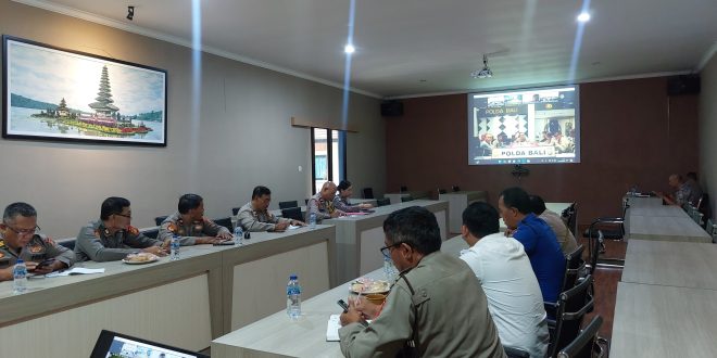 Media Patrolibali, Tabanan – bertempat di Ruang Vicon Sarja Arya Racana Polres Tabanan mengikuti Kegiatan Rakor Operasi Cipkon Agung 2024melalui Zoom Meeting yang dipimpin oleh Karo Ops Polda Bali KOMBES POL SULISTIJONO, S.I.K., M.H. (Selasa,5/5/2024.)