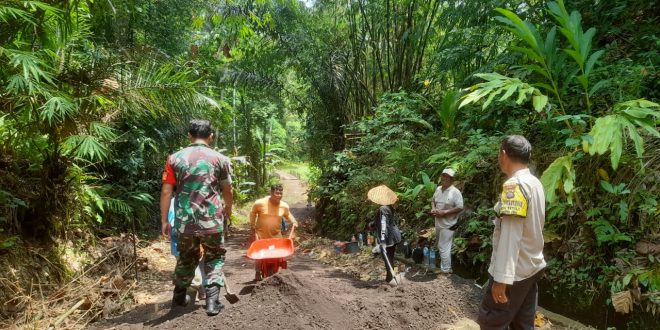 “Pembangunan infrastruktur berupa jalan- jalan penghubung yang ada di desa tentunya akan memberikan dampak positif yang sangat besar bagi peningkatan kualitas hidup masyarakat karena merupakan salah satu sarana kebutuhan yang harus dipenuhi.” Tutup Babinsa