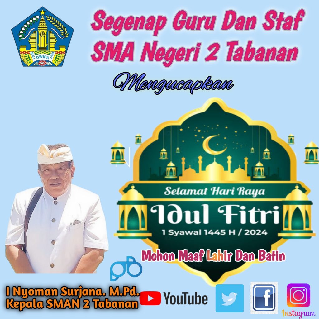 Segenap Guru Dan Staf Sekolah SMAN 2 Tabanan .mengucapkan Selamat Hari Raya Idul Fitri 1445H/2024. Rudi April 7, 2024 BERITA, PENDIDIKAN Leave a comment 33 Views Related Articles Selamat Hari Raya Galungan Dan Kuningan, 19 – 29 November 2025 6 jam ago Sambut HUT Kota Singasana ke-532, Koramil Kerambitan Turun Tangan dalam Aksi Gerebek Sampah 5 hari ago Polda Bali Gencar Awasi Harga Beras, 2 Toko di Denpasar Terjaring Razia 2 minggu ago Share Facebook Twitter Stumbleupon LinkedIn Pinterest