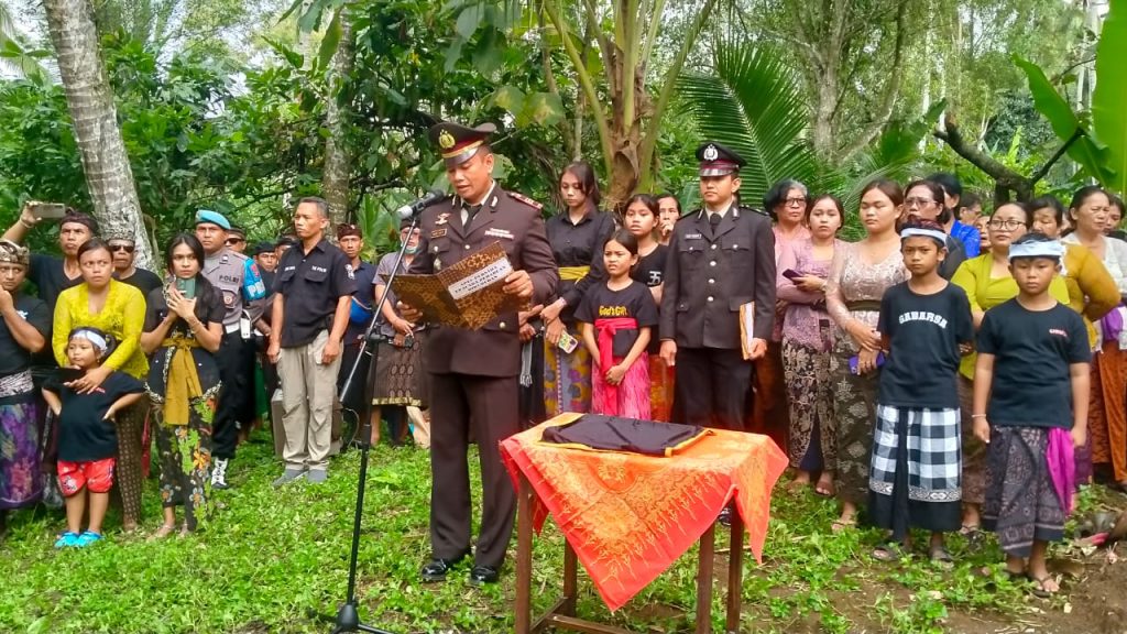 Media Patrolibali, Tabanan – Kapolsek Penebel AKP Gusti Kade Alit Murdiasa,S.H.,M.H, memberikan penghormatan terakhir dalam upacara Secara Dinas Kepolisian Perabuan jenazah Almarhum Aipda Purn I Nyoman.Badera, bertempat di Setra Desa Adat Pekraman Banjar Sandan Amplas Desa Wongaye Gede Kec. Penebel Kab. Rabu ( 10/4/2024 )