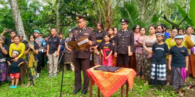 Media Patrolibali, Tabanan – Kapolsek Penebel AKP Gusti Kade Alit Murdiasa,S.H.,M.H, memberikan penghormatan terakhir dalam upacara Secara Dinas Kepolisian Perabuan jenazah Almarhum Aipda Purn I Nyoman.Badera, bertempat di Setra Desa Adat Pekraman Banjar Sandan Amplas Desa Wongaye Gede Kec. Penebel Kab. Rabu ( 10/4/2024 )