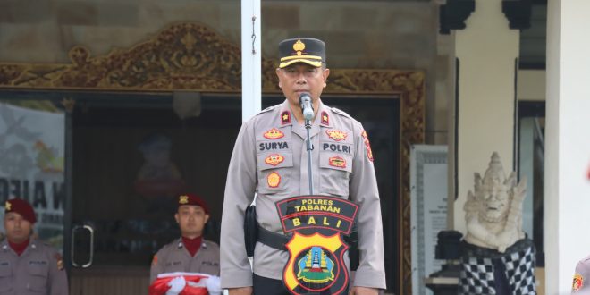 Media Patrolibali, Tabanan – Waka Polres Tabanan Kompol I Gede Made Surya Atmaja Putra ,S.,Sos memimpin upacara memperingati hari Kesadaran Nasional di Rangkai dengan Konsolidasi Ops. Ketupat Agung 2024 dan KRYD, bertempat di Lapangan Apel Polres Tabanan, Rabu ( 17/4/2024 )