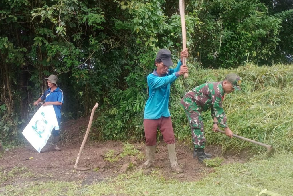 Dukung Pembangunan Infrastruktur Desa, Babinsa Gotong Royong Bangun Jalan