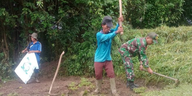 Dukung Pembangunan Infrastruktur Desa, Babinsa Gotong Royong Bangun Jalan