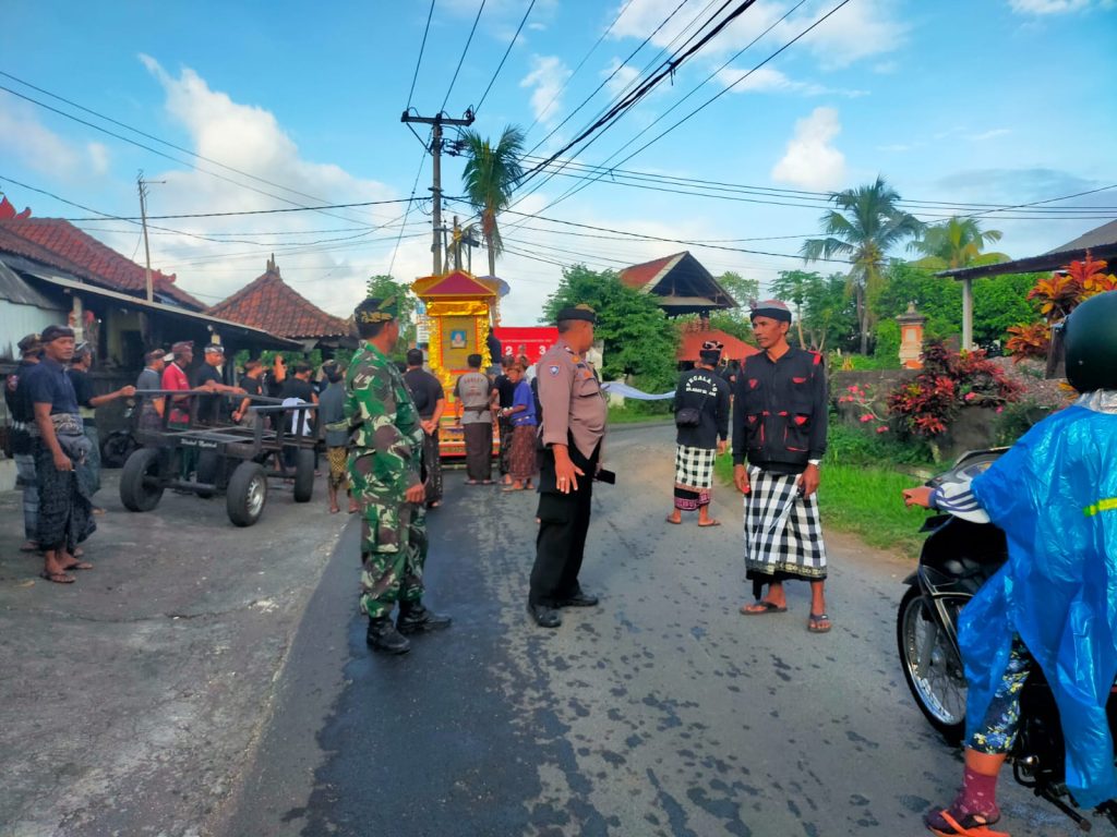 Pada hari Rabu tanggal 1 Mei 2024 pukul 08.00 wita babinkamtibmas Desa Bengkel Aiptu I Nengah Mariasa bersinergi dengan Babinsa dan Pecalang melaksanakan pengamanan upacara ngaben almarhum Ni Ketut Sandi.