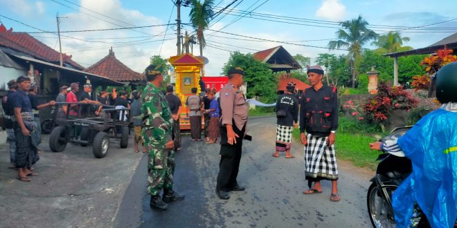 Pada hari Rabu tanggal 1 Mei 2024 pukul 08.00 wita babinkamtibmas Desa Bengkel Aiptu I Nengah Mariasa bersinergi dengan Babinsa dan Pecalang melaksanakan pengamanan upacara ngaben almarhum Ni Ketut Sandi.