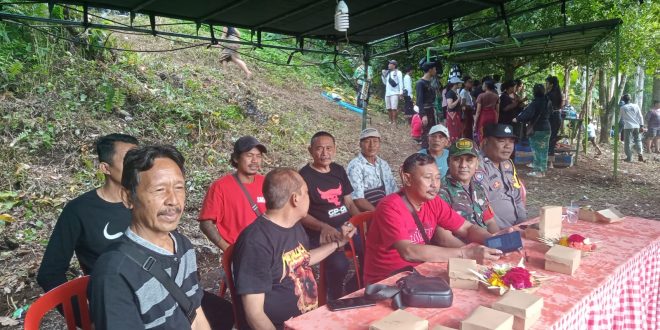 Tabanan – Babinsa Desa Dalang Koramil 1619-02/Selemadeg Serka I Dewa Gede Bayu Budi Utama bersama Bhabinkamtibmas melaksanakan pengamanan dan pemantauan kegiatan Lomba mancing di saluran Irigasi Subak Peumahan Br. Dalang Desa, Desa. Dalang Kec.Selemadeg Timur, Selasa (23/7/2024)