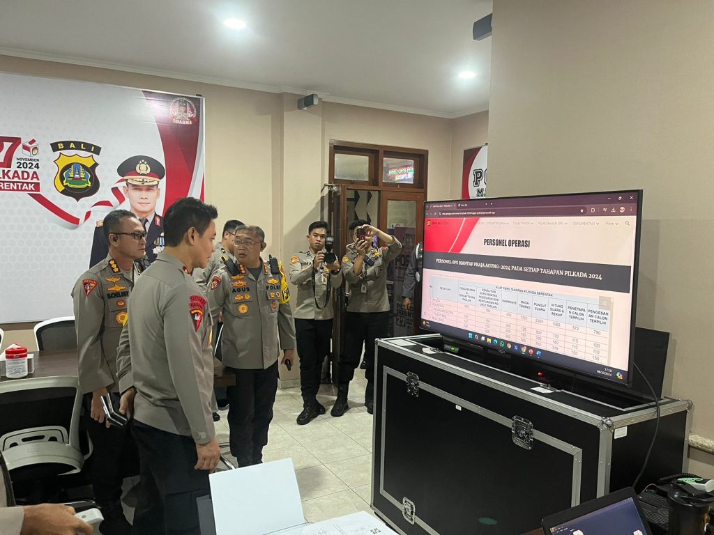 Media Patrolibali, Denpasar – Kapolda Bali, Irjen Pol. Daniel Adityajaya, S.H., S.I.K., M.Si. mengecek Posko Mantap Praja Agung-2024 di lantai 2 gedung Biro Ops Polda Bali, Selasa (8/10).