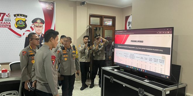 Media Patrolibali, Denpasar – Kapolda Bali, Irjen Pol. Daniel Adityajaya, S.H., S.I.K., M.Si. mengecek Posko Mantap Praja Agung-2024 di lantai 2 gedung Biro Ops Polda Bali, Selasa (8/10).