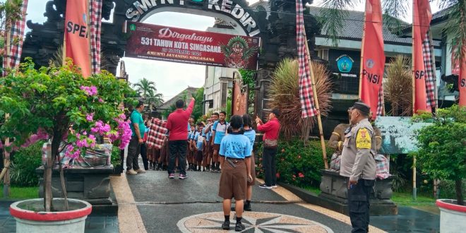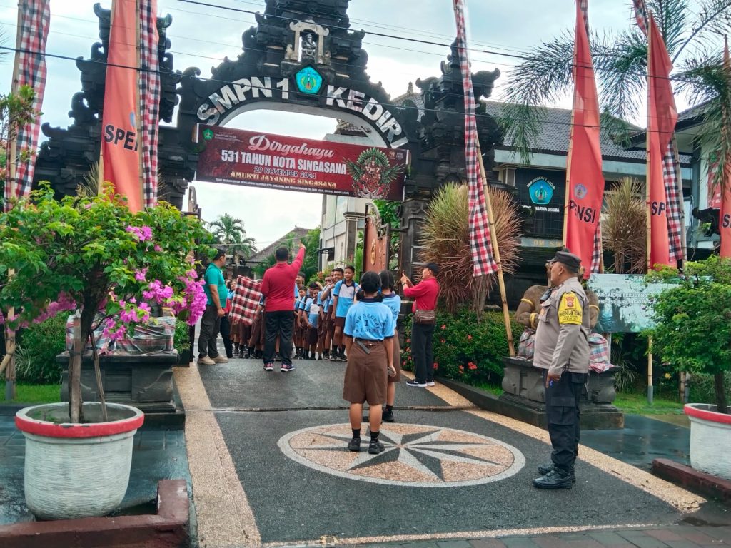 Media Patrolibali, Tabanan – Demi terciptanya situasi aman dan kondusif, dan untuk mencegah terjadinya gangguan Kamtibmas maka dipandang perlu kehadiran Bhabinkamtibmas atensi Gerak jalan santai Siswa SMPN1 Kediri Kecamatan Kediri Kabupaten Tabanan