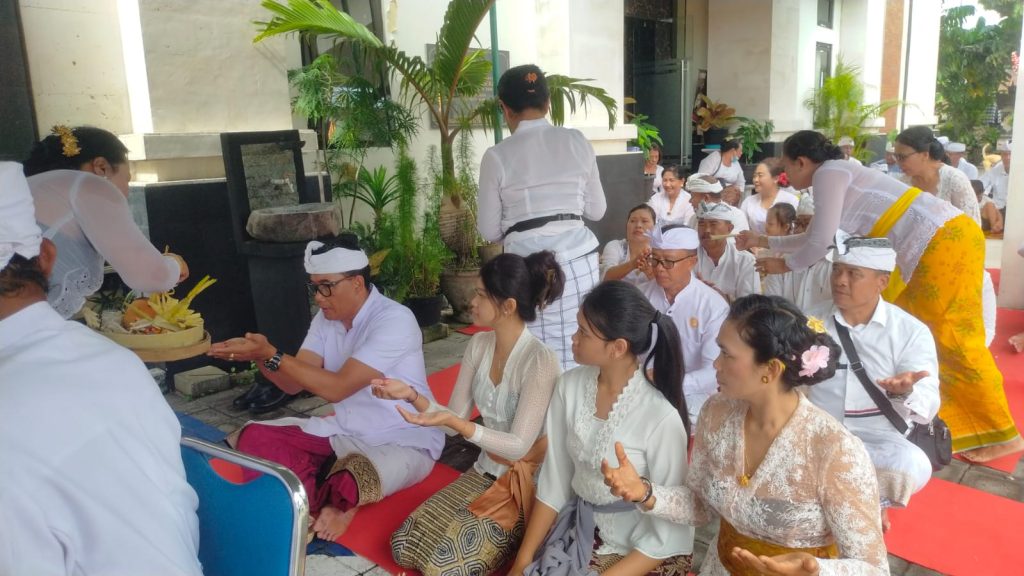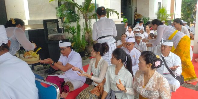 Media Patrolibali, Tabanan – Dalam rangka menjaga keimanan dan ketaqwaan kepada Tuhan Yang Maha Esa (Ida Sang Hyang Widhi Wasa) seluruh personil Polsek Kediri yang beragama Hindu melaksanakan Persembahyangan bersama pada hari Purnama sasih keenam.