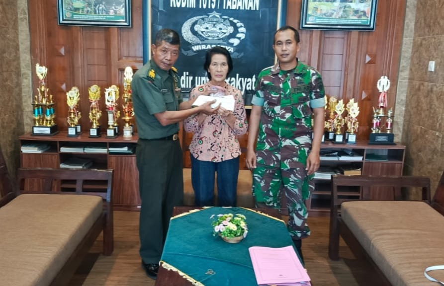 “Sebagai bentuk penghormatan kepada almarhum yang telah mengabdi kepada negara, kami dari Kodim 1619/Tabanan merasa terhormat bisa memberikan sedikit bantuan kepada keluarga yang ditinggalkan. Semoga ini dapat meringankan beban mereka dan menjadi doa yang baik bagi almarhum,” kata Pasi Pers Kodim 1619/Tabanan, Kapten Caj Triyono, yang mewakili Dandim 1619/Tabanan.