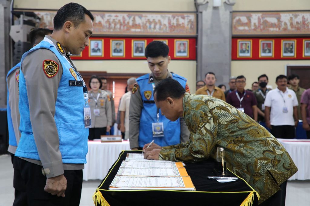 Media Patrolibali, Denpasar – Untuk mewujudkan transformasi di dalam organisasi Polri yang Presisi (Prediktif, Responsibilitias, Transparansi Berkeadilan) dan menjadikan SDM yang unggul, Polda Bali menggelar kegiatan pembacaan, pengambilan sumpah dan penandatanganan pakta integritas bagi panitia, peserta dan orang tua/wali penerimaan terpadu calon anggota Polri TA 2025 di Gedung Presisi Polda Bali, Jumat (7/3). Kegiatan ini juga dihadiri oleh pengawas internal dan eksternal.
